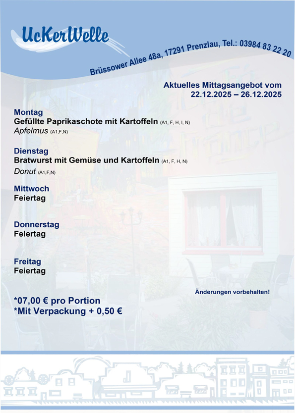 Das Restaurant „UcKerWelle“ wird von der „Uckerwelle gGmbH“ betrieben.